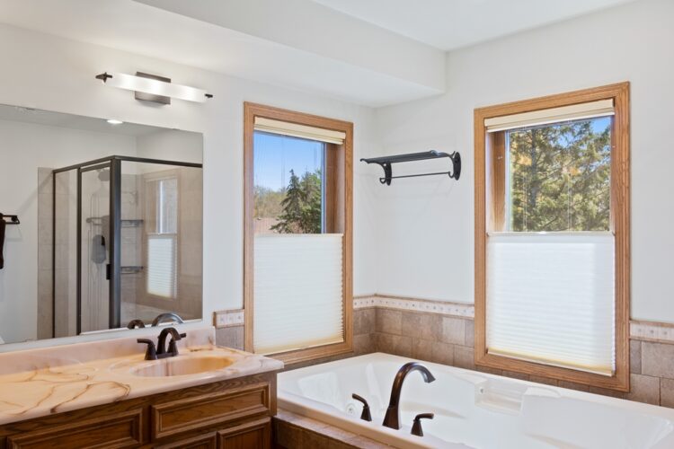 Triple pane glass windows filled with krypton gas prevent heat loss in the winter, and excessive heat in the summer. Honeycomb window blinds provide additional heat insulation and shading.